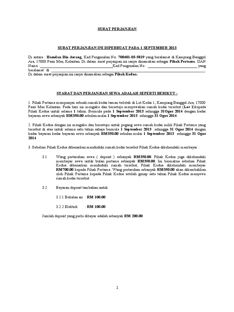 Surat Perjanjian Sewa Kedai Rent Agreement Agreement Surat Rent from i.pinimg.com Surat perjanjian sewa kedai 2020. Dalam surat contoh ini ketibaan pekerja lewat meletakkan pengeluaran dalam bahaya. November 30 2015 at 12 20 pm. 780714 09 5073 yang beralamat di no 14 contoh surat perjanjian sewa kedai download. Contoh surat kebenaran sewa kedai mp3 & mp4. If you are looking for surat rasmi perjanjian sewa kedai you've come to the right place. Namun di era yang serba canggih ini sudah sedikit sekali, bahkan hampir tidak ada orang yang. Surat penamatan sampel kedua untuk penyebab.